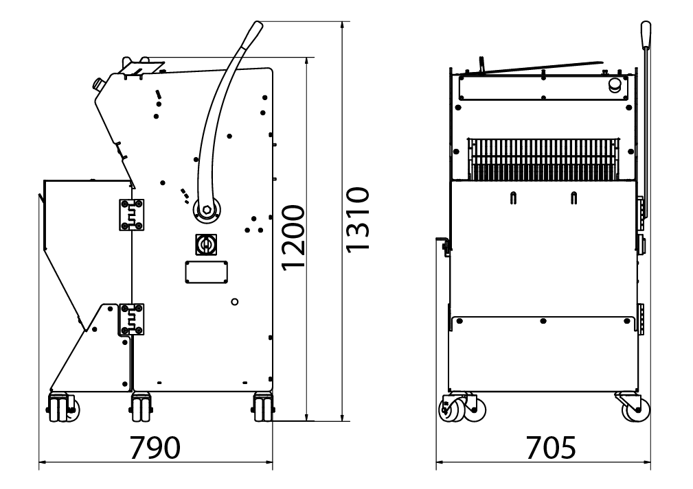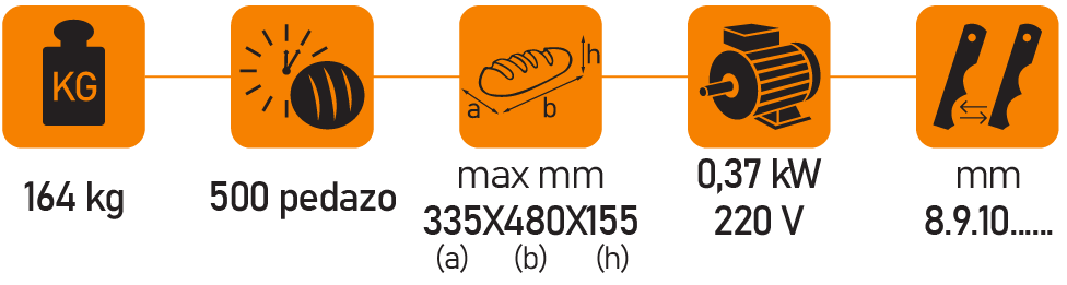 Gracias al sistema de puerta abatible, es muy fácil llegar al interior de la máquina, que antes era inaccesible. Las cortadoras de la nueva serie son fáciles de limpiar y fáciles de mantener. Su diseño moderno agrega elegancia y estética a las empresas. Mejora la decoración de los panaderos mediante una elección de color adecuada. Se puede colocar entre dos bastidores o armarios. No hay necesidad de ir de lado a lado para cortar. Tire del brazo hacia abajo y coloque el pan adentro, luego obtendrá pan rebanado del frente. El grosor de la rebanada se puede producir desde 8 mm hasta anchos más anchos. La producción estándar es de 16 mm. Hay un soporte para bolsas en la máquina. Las cuchillas especiales de Matas garantizan una durabilidad a largo plazo. Producido en estándares CE. Garantía de un año contra defectos de fabricación e instalación.